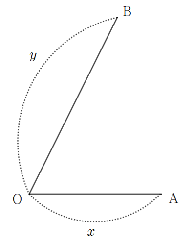 이때, 위 그림처럼 첫 번째 자동차의 이동거리를 $x$, 두 번째 자동차의 이동거리를 $y$라 하자.