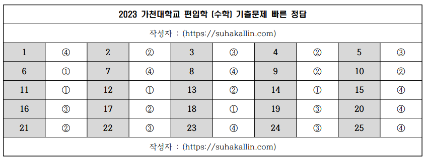 2023 가천대학교 편입수학 기출문제 빠른 정답