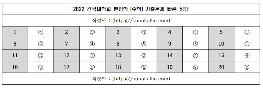 2022 건국대학교 편입수학 기출문제 빠른 정답