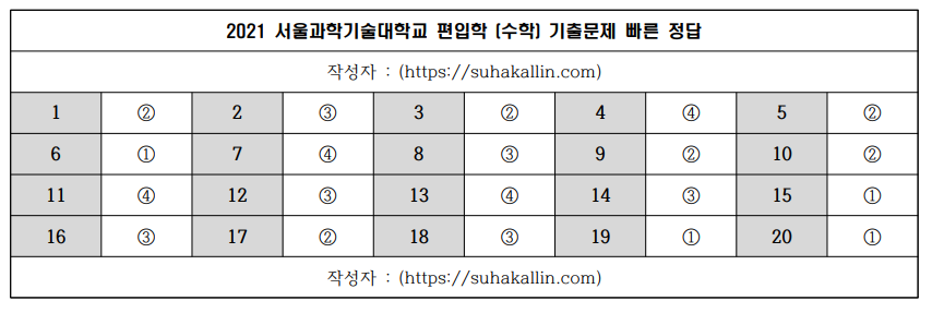 2021 서울과학기술대학교 편입수학 기출문제 빠른 정답