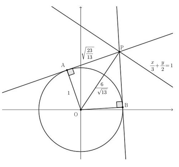 $$\mathrm{\overline{PA}} = \mathrm{\overline{PB}} = \sqrt{\frac{23}{13}}$$