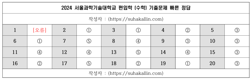 2024 서울과학기술대학교 편입수학 기출문제 빠른 정답