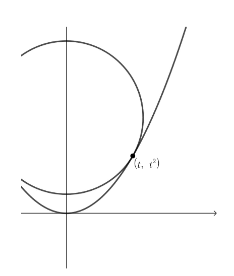 원이 주어진 포물선에 내접하므로 원의 중점과 접점을 지나는 직선과
