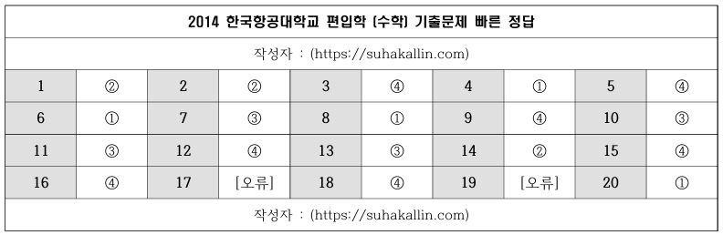 2014 항공대학교 편입수학 기출문제 빠른 정답