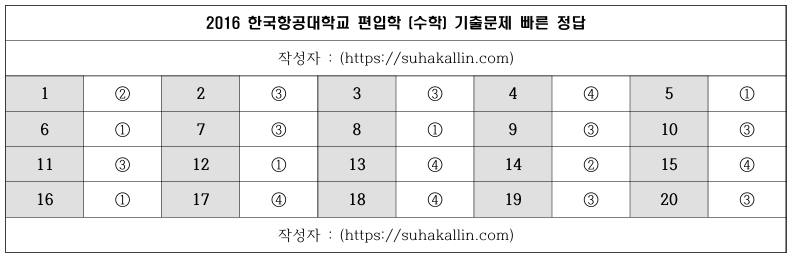 2016 항공대학교 편입수학 기출문제 빠른 정답