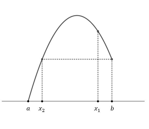 한편 함수 $g(x)$는 구간 $[a, x_1]$에서도 연속이고, $g(a)<g(b)<g(x_1)$이므로 구간 $(a, x_1)$에