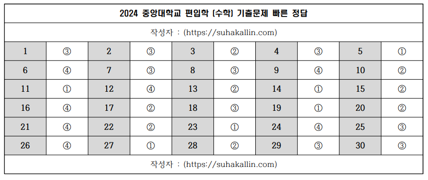 2024 중앙대학교 편입수학 기출문제 빠른 정답