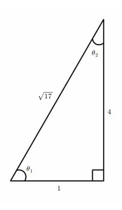 & \sin\theta_1 = \frac{4}{\sqrt{17}},\quad \sin\theta_2 = \frac{1}{\sqrt{17}} \\