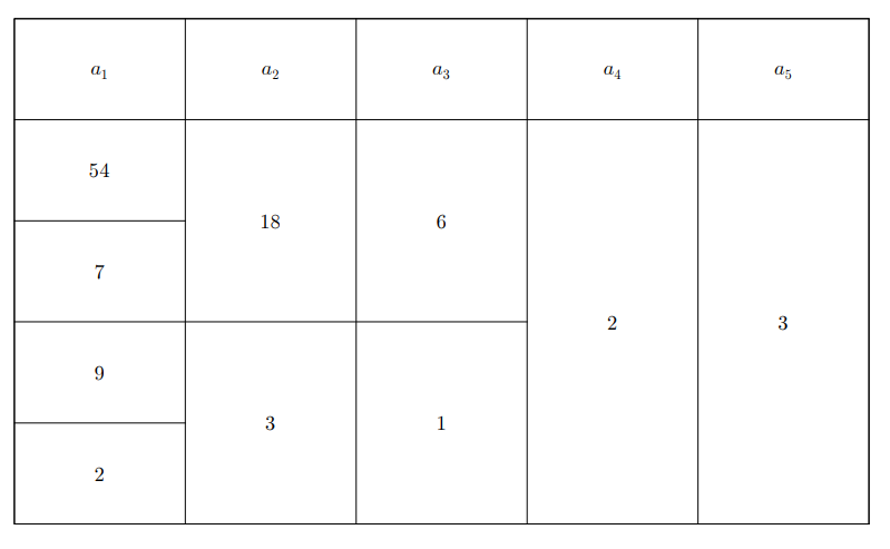 이제 직접 점화식을 이용해보면 가능한 경우는 $a_4 = 2, a_5 = 3$인 경우 뿐임을 알 수 있다.