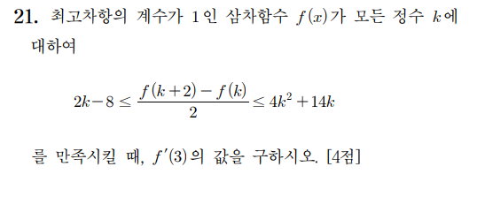 이다. (상수 $C$의 값을 결정할 수 없음을 알 수 있는데, 왜 $f'(3)$의 값을 물어본 것인지 알 수 있다.)