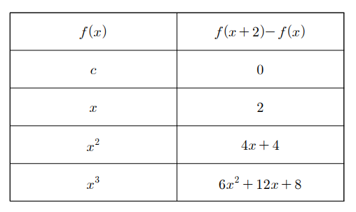 (마치 미분처럼, 반대로 $f(x+2)-f(x)$를 통해 $f(x)$도 구할 수 있다.)