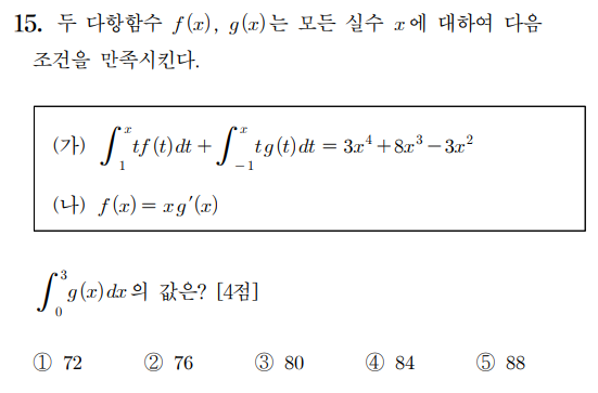 임을 얻는다. 그런데 $f(x)=xg'(x)$이므로 이를 이용하여 식을 다시 쓰면
