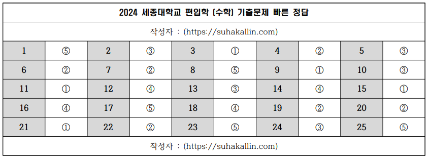 2024 세종대학교 편입수학 기출문제 빠른 정답