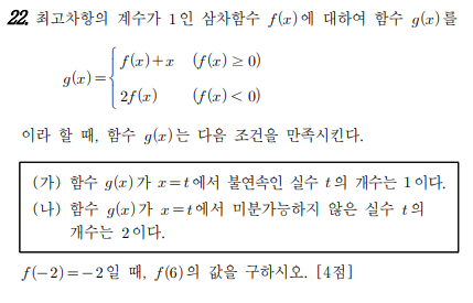 $g(x)$의 정의가 바뀌는 지점이 한 곳 뿐이므로 잘 쳐줘야 미분불가능점이 최대 1개가 되기 때문이다.