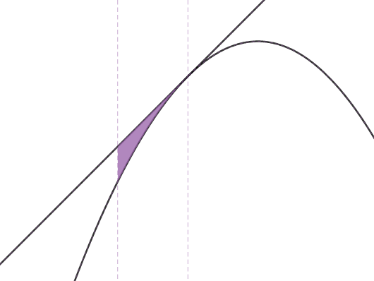 함수 $y=f(x)$의 개형과 접선을 그려보면 다음과 같다.