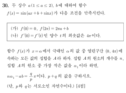 문제를 처음 봤을때는 삼각함수 안에 삼각함수가 또 합성되어 있어 굉장히 까다로운 문제일 줄 알았는데