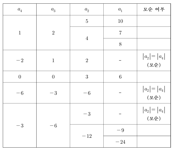 이제 $|a_3| = |a_5|$로부터 가능한 경우를 찾아보자.