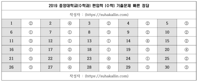 2019 중앙대학교 편입수학 기출문제 빠른 정답