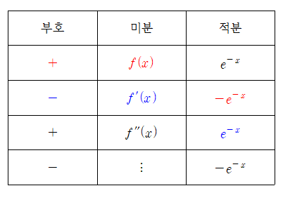 1. 적분할 때마다 상수로 나눠준 뒤 동일하게 계산한다. (도표를 이용한다.)