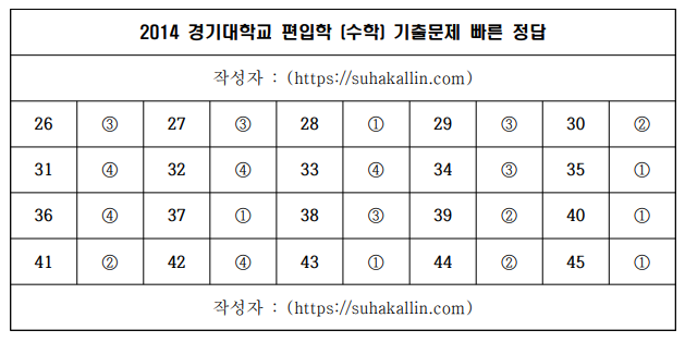 이상으로 2014년 경기대학교 편입학 기출문제 (수학) 정답 및 해설을 마치겠습니다.