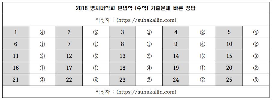 이상으로 2018년 명지대학교 편입수학 기출문제 정답 및 해설을 마치겠습니다.