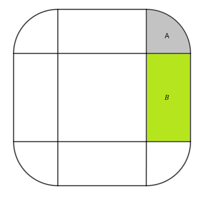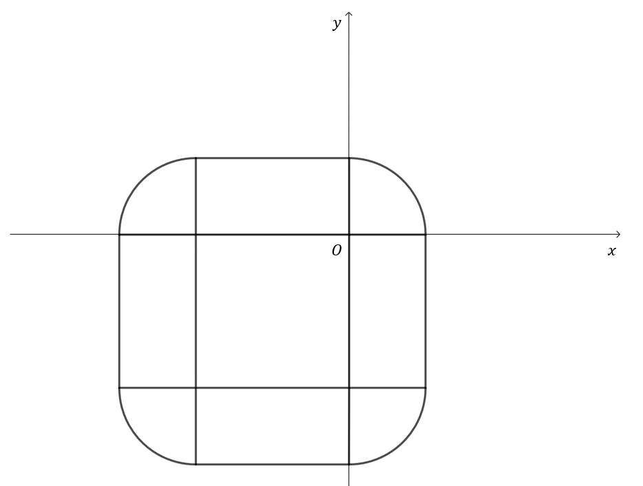 주어진 영역 $R$은 아래 사진의 바깥 도형의 내부이면서 안쪽 정사각형의 외부이다.