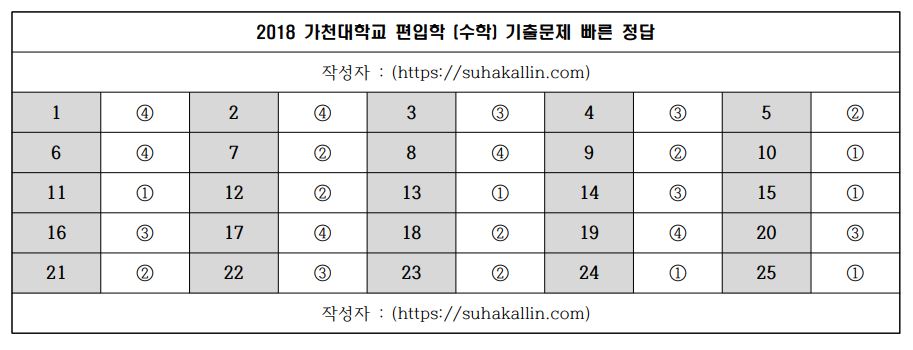 2018 가천대학교 편입수학 기출문제 빠른 정답