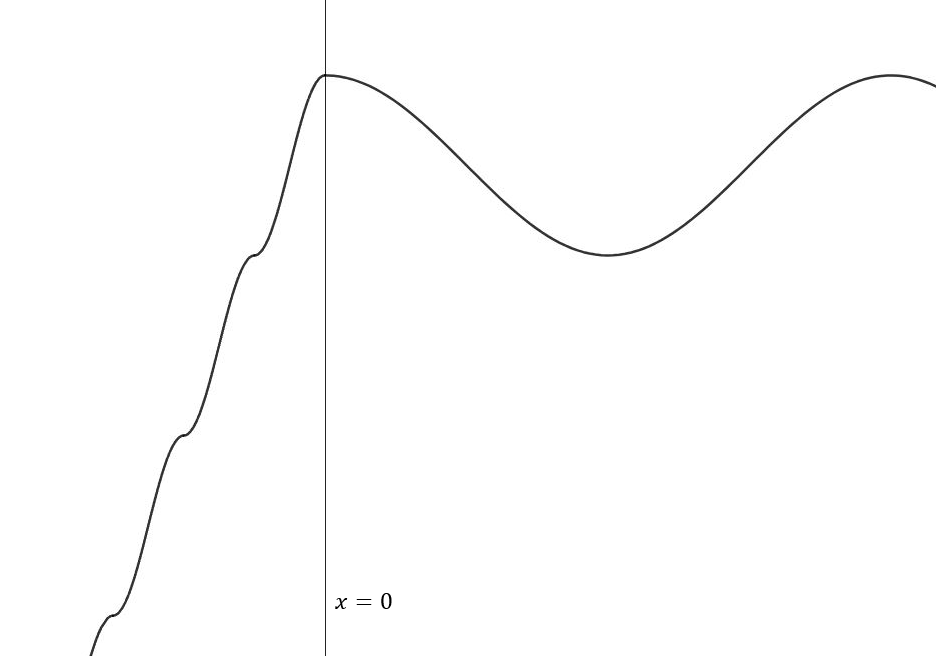 한편 이 함수의 $y$축은 반드시 $x<0$ 부분의 삼중근이 있는 지점에 놓이게 되므로 (미분가능하니까)