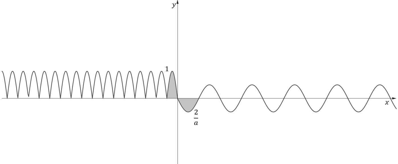 이때, $x<0$에서 한 주기의 적분값은 $1$이고, $x>0$에서의 주기의 절반의 적분값은 $\frac{2}{a}$이다.