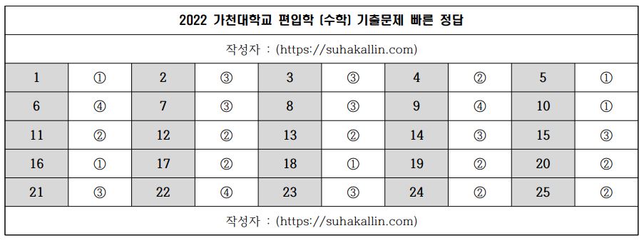 2022 가천대학교 편입수학 기출문제 빠른 정답