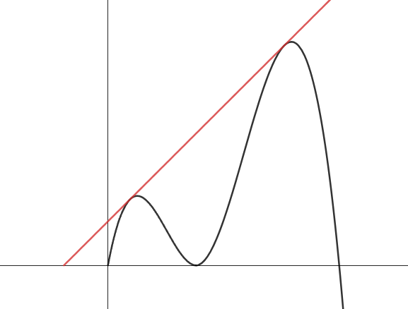$h(x)=x^3 - 8x^2 + 16x$라 하고 직선과의 접점을 $t$라 하면