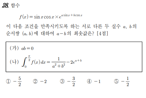 (가)조건에서 $a=0, b\neq 0$이거나 $a\neq 0, b=0$이다. 경우를 나눠 계산하자.