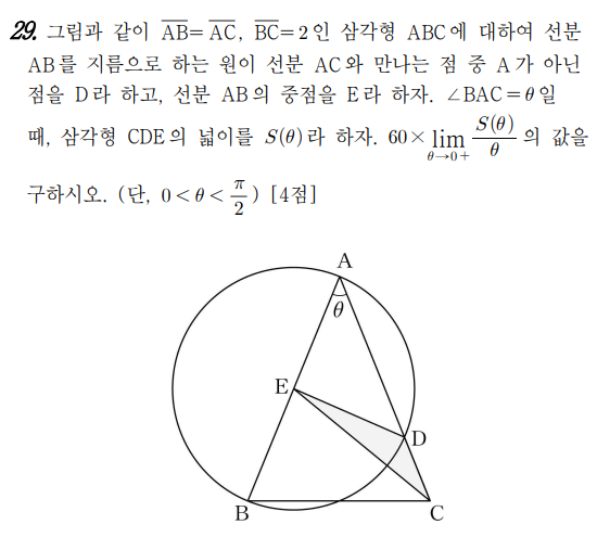다만 삼각함수 도형의 극한 유형이 출제된 것은 조금 의외긴 하네요.