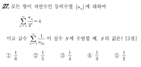 이고, $a=4, r=2$이다. 따라서 구하는 무한합은 $\frac{1}{6}$이다.