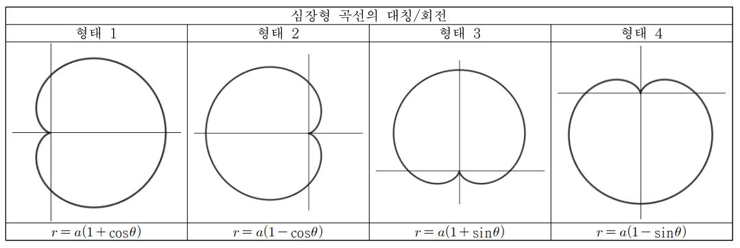 우선 심장형 곡선이라 하면 다음과 같은 형태의 극곡선을 말합니다.